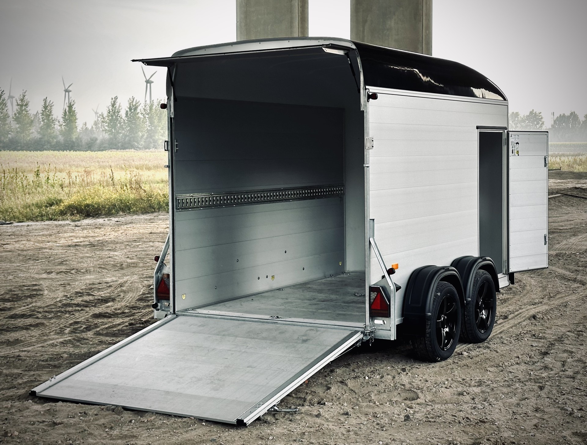 Met laadklep en zijdeur (beiden met slot) / maximaal laadgewicht 1400 kg / MTM 2000 kg / laadvloer 320 X 167 X 200 - Geschikt voor transport van 1 tot 2 motors, machines of ander lading - Verplicht BE rijbewijs voorleggen - Meegeleverd: disselslot, wielklem, reservewiel en spanriemen om lading vast te leggen - Afhalen en inleveren in regio Brugge